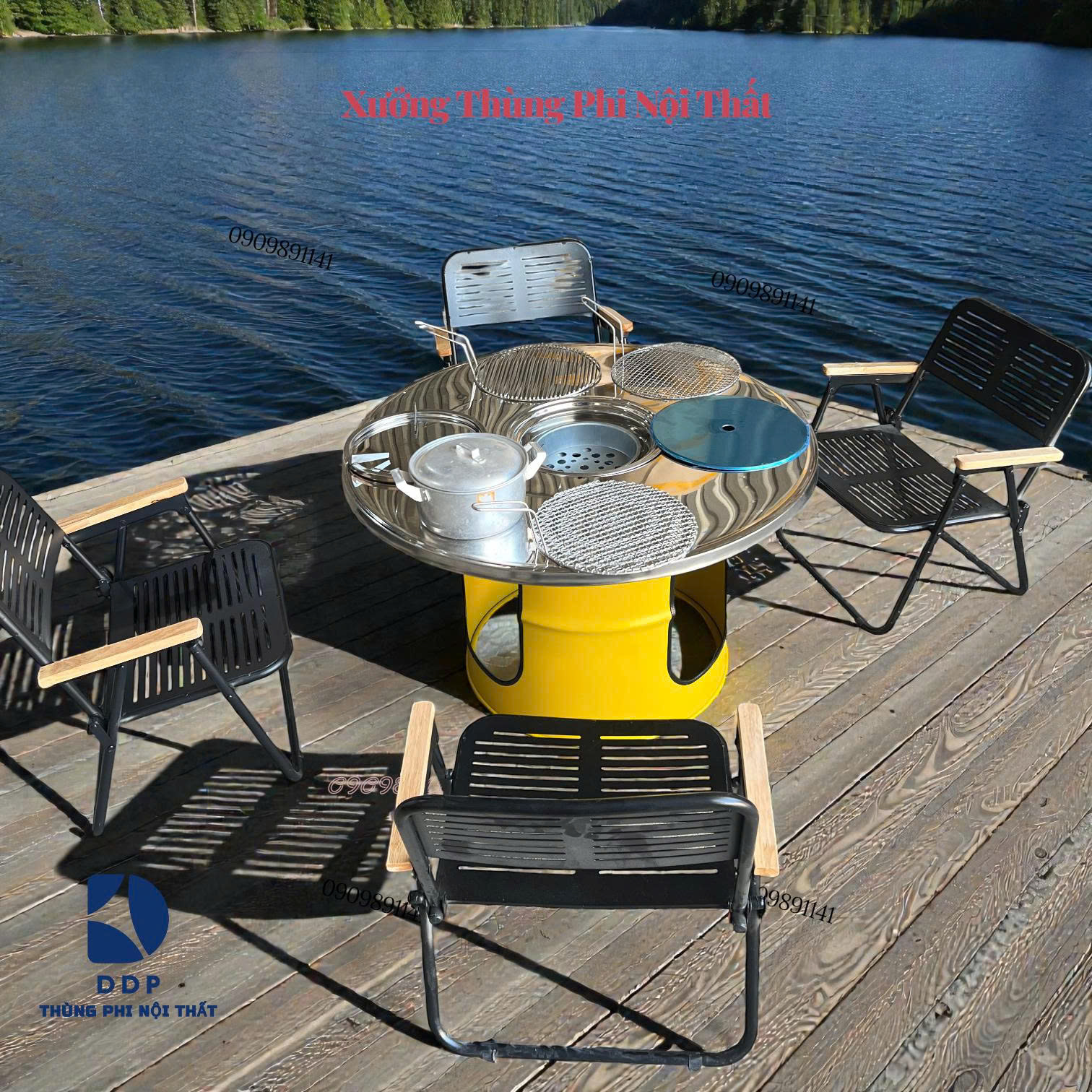 Nếu bạn đang tìm nơi mua bàn nướng BBQ ngoài trời, xưởng nội thất thùng phi DDP là điểm đến đáng cân nhắc. Xưởng trực tiếp sản xuất bàn nướng thùng phi với khung thép bền, sơn 3 lớp chống gỉ, đảm bảo độ bền và thẩm mỹ phù hợp quán ăn. Bên cạnh bàn nướng, xưởng nội thất thùng phi DDP nhận thi công – setup quán ăn trọn gói, bao gồm thiết kế mặt bằng, bố trí bàn ghế, decor quán, và lắp đặt hệ thống hút khói âm/dương.