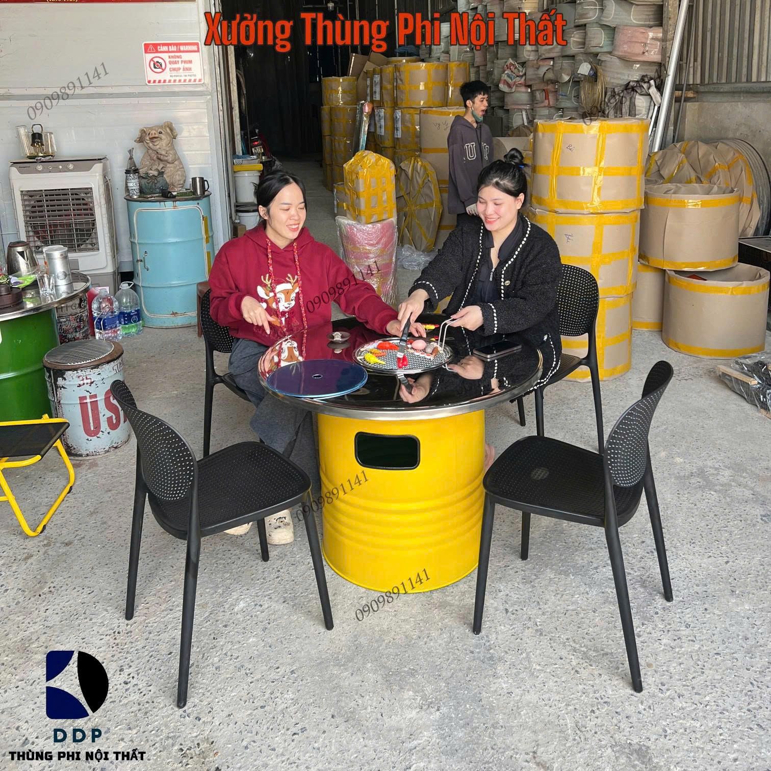 Nếu bạn đang tìm kiếm giải pháp tối ưu hóa không gian hẹp mà vẫn giữ được cá tính, bàn nướng thùng phi mini là lựa chọn không thể bỏ qua. Mẫu bàn này được thiết kế với kích thước nhỏ gọn nhưng vẫn đảm bảo đầy đủ công năng, giúp chủ quán dễ dàng sắp xếp linh hoạt và tận dụng tối đa diện tích mặt bằng có hạn.