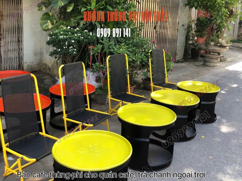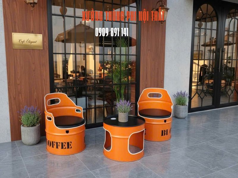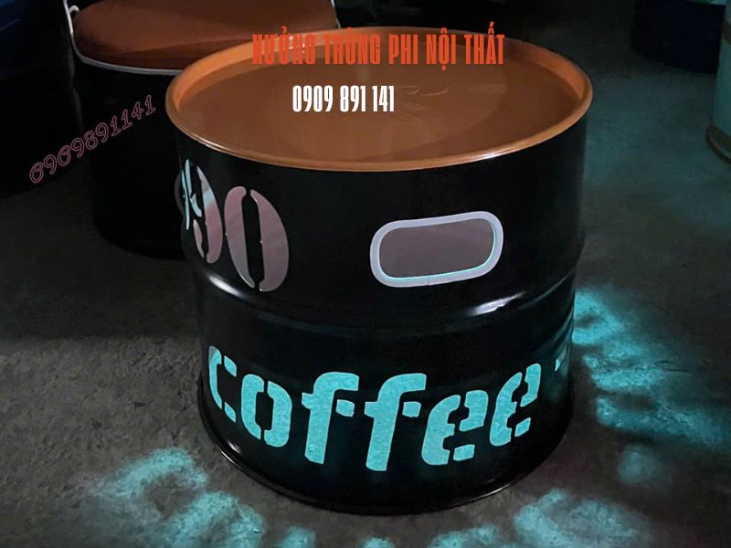 Bàn ghế làm bằng thùng phi được nhiều quán cafe lựa chọn để gia công bởi chất liệu này vừa đáp ứng tốt nhu cầu sử dụng thực tế, vừa mang lại giá trị thẩm mỹ và tối ưu chi phí đầu tư.