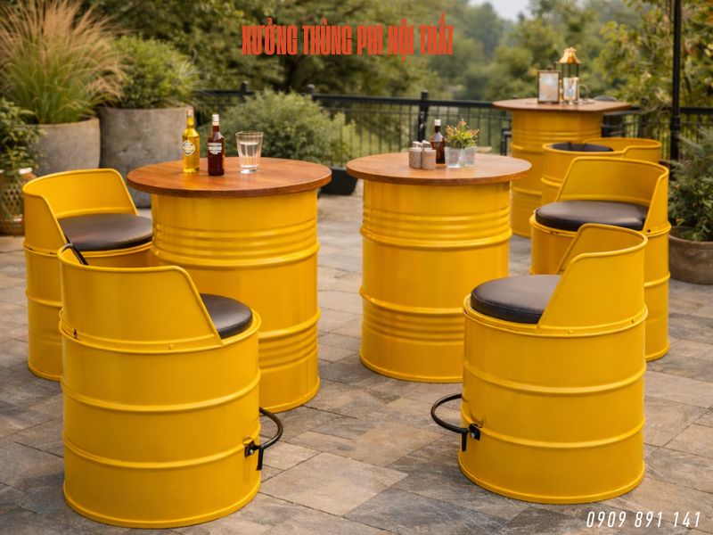 Ưu điểm dài hạn khi đặt bàn ghế thùng phi gia công theo yêu cầu