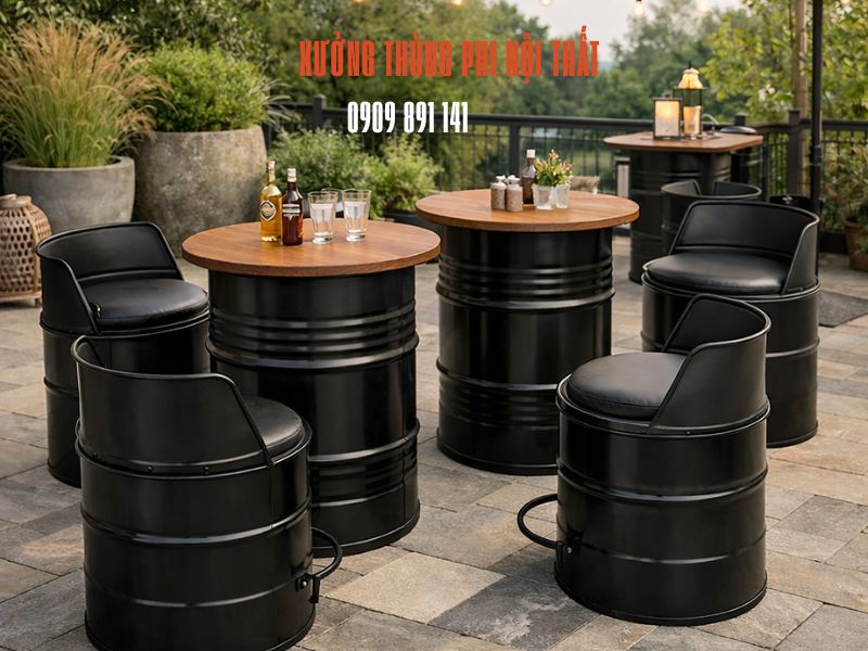 Bàn thùng phi dành cho quán cafe ngoài trời – Mộc, chắc chắn, có gu